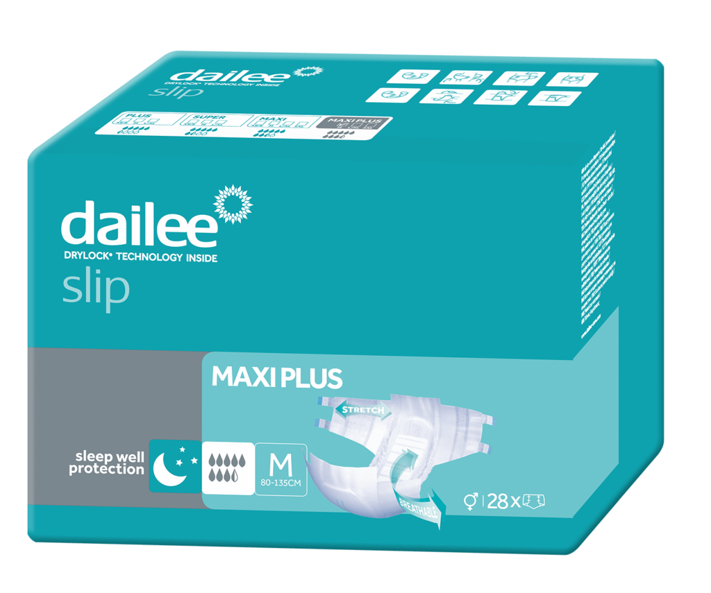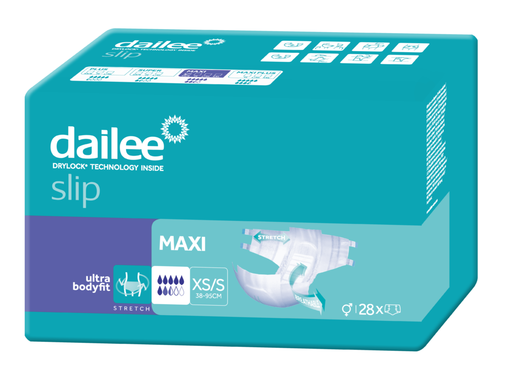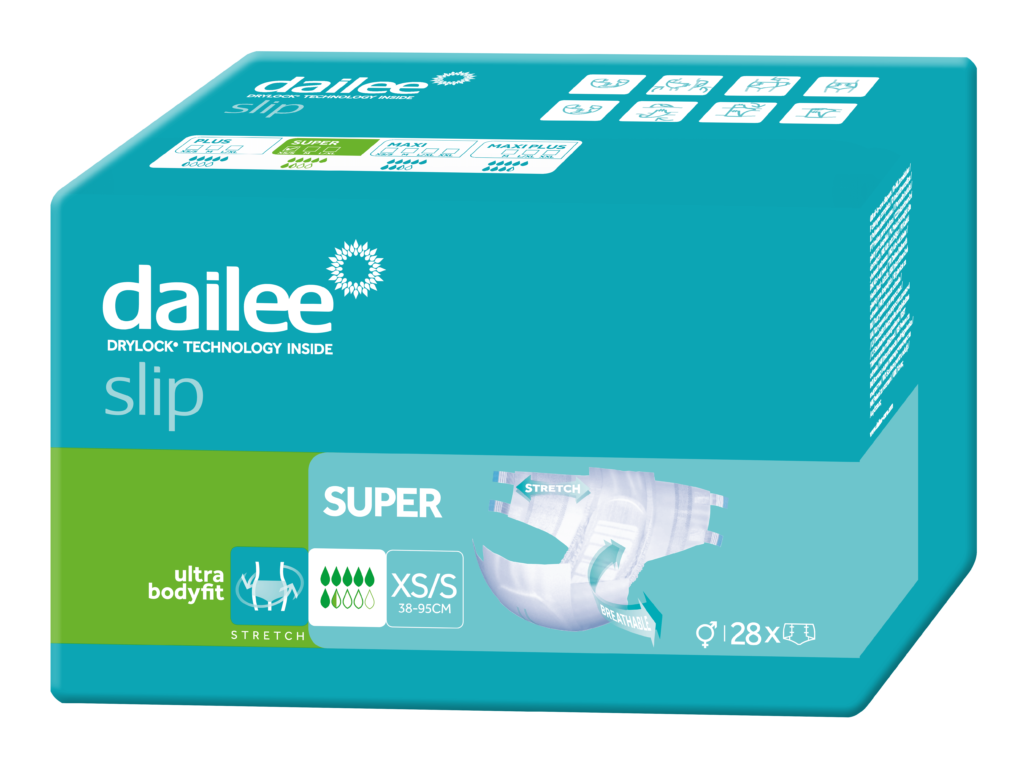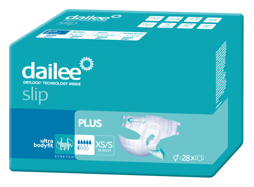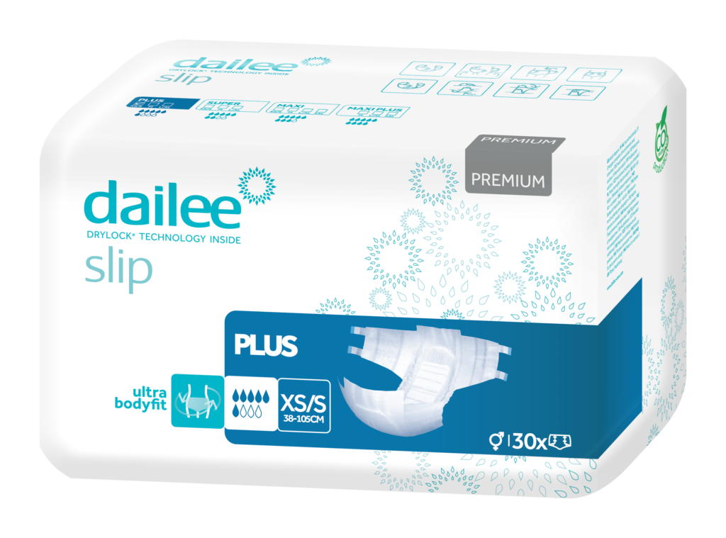 „Dailee Slip Premium” sauskelnės „Dailee Slip Premium”, sukurtos neaktyviems asmenims, kuriems tenka kęsti sunkų ar labai sunkų šlapimo nelaikymą, iš naujo apibrėžia komforto ir patogumo sąvoką.